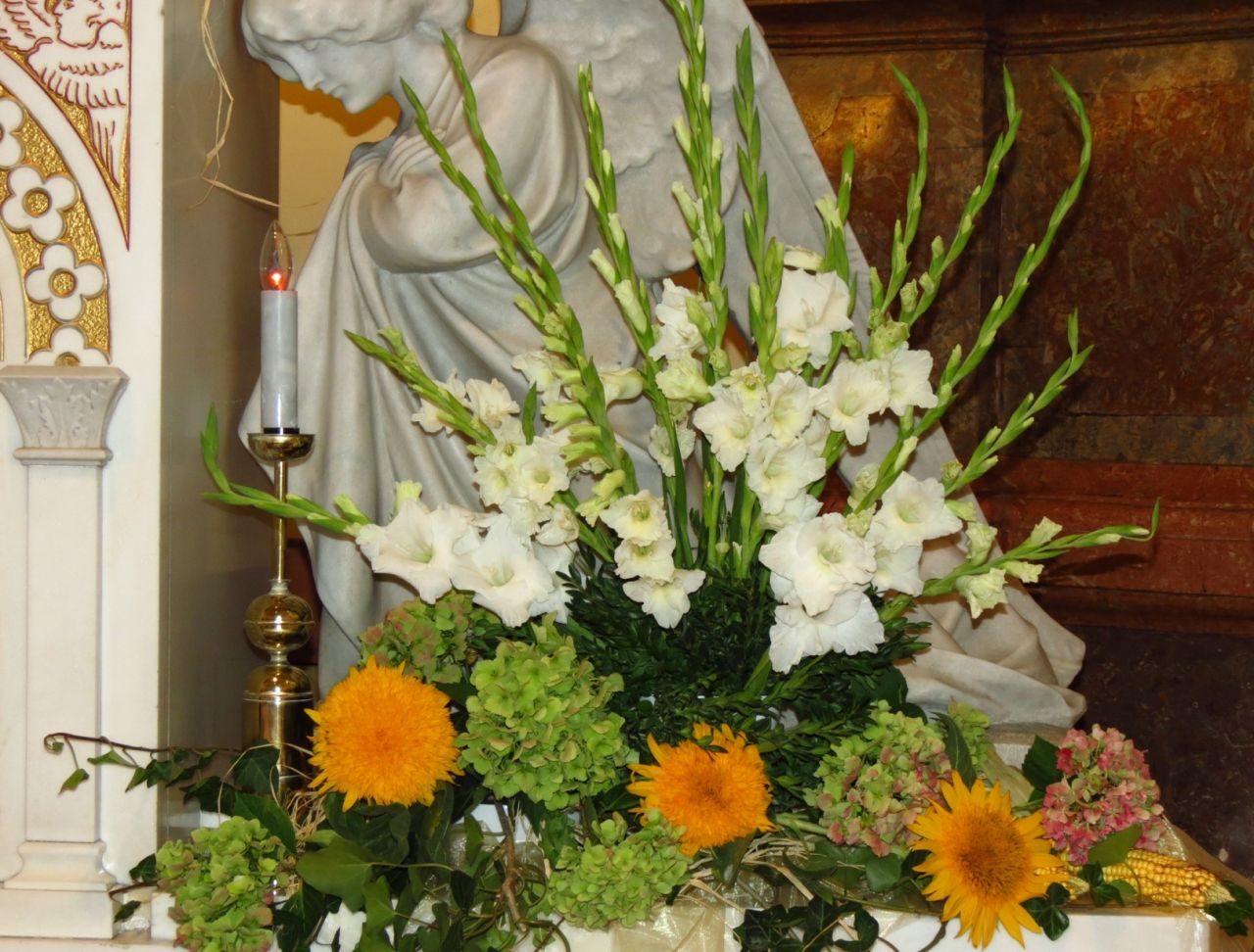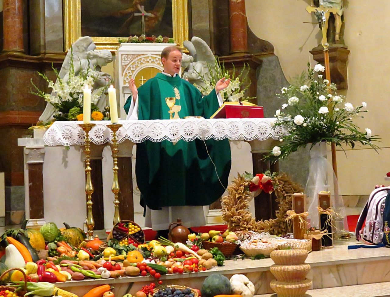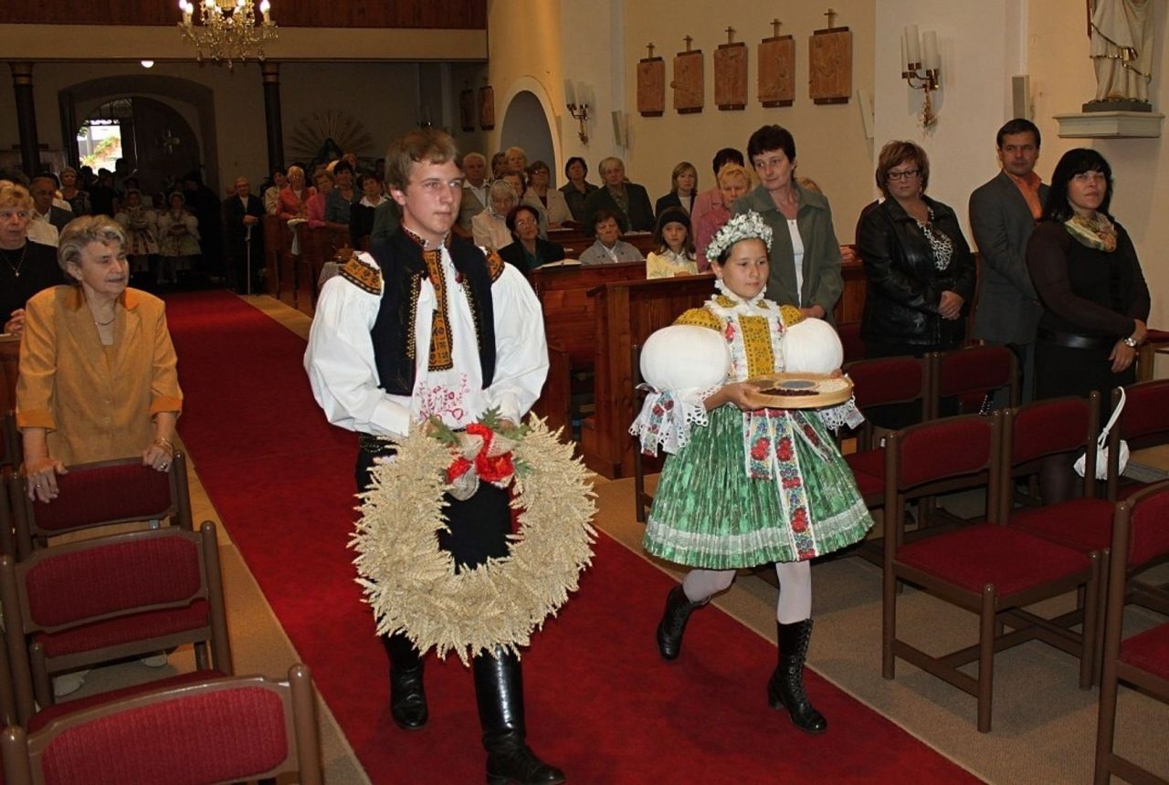 Žehnaly se aktovky a nesly se dary plodů našich polí a zahrad jako znamení díku.