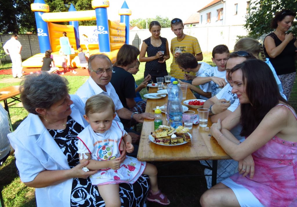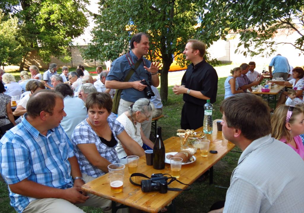 Foto z neděle, 3. a posledního dne Spytihněvské pouti. Mše svatá byla na tři hodiny odpoledne. Poté bylo na faře zajištěno setkání farníků a občanů s občerstvením.