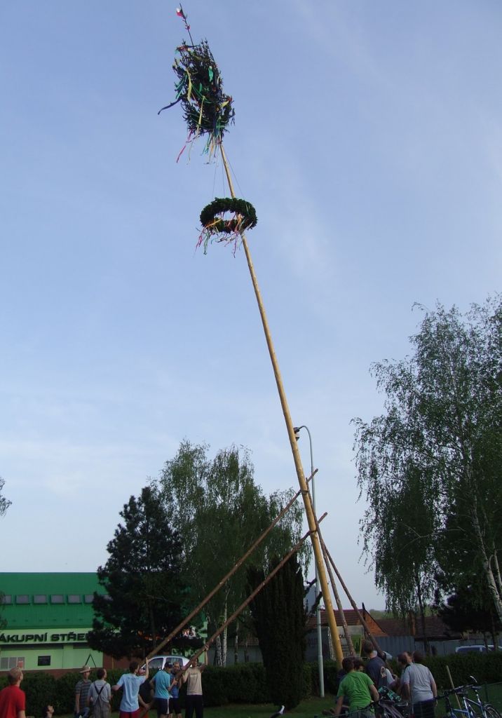 Společného stavění máje vysokého 21 metrů se zúčastnilo asi 20 mladých lidí už v předvečer prvního máje.